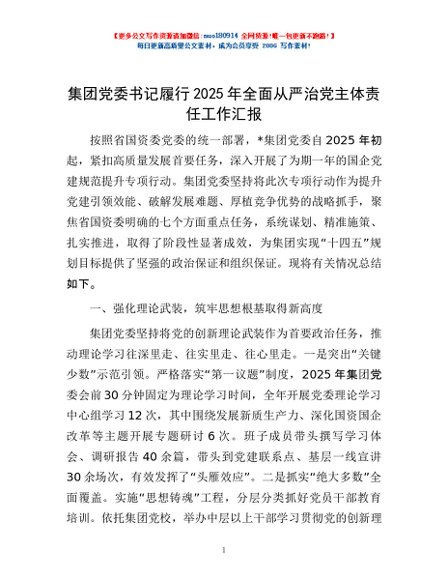 / 集团党委书记履行2025年全面从严治党主体责任工作汇报