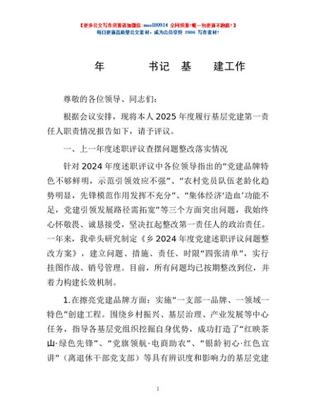 / 2025年度乡党委书记抓基层党建工作述职报告