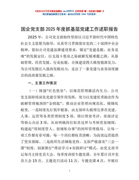 / 国企党支部2025年度抓基层党建工作述职报告