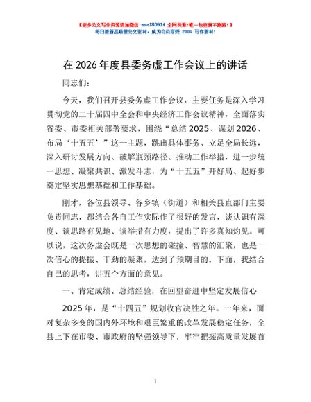 / 在2026年度县委务虚工作会议上的讲话
