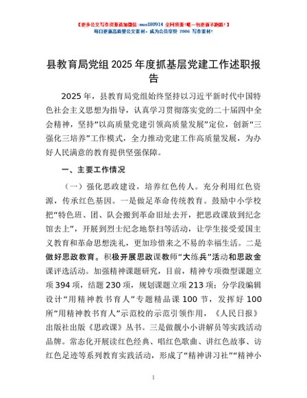 / 县教育局党组2025年度抓基层党建工作述职报告