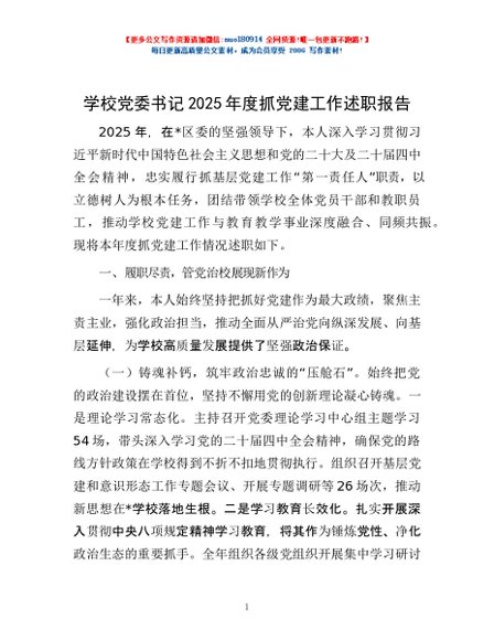 / 学校党委书记2025年度抓党建工作述职报告