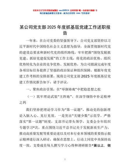 / 某公司党支部2025年度抓基层党建工作述职报告