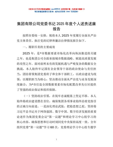 / 集团有限公司党委书记2025年度个人述责述廉报告