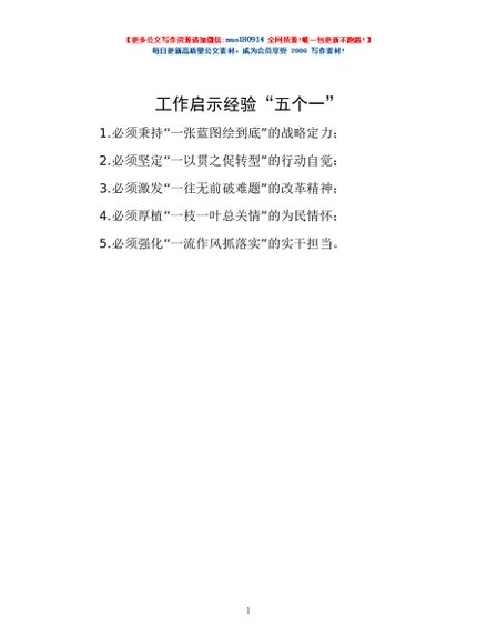 / 工作启示经验“五个一”