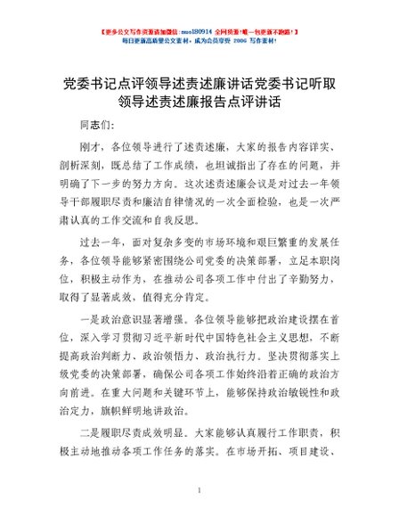 / 党委书记点评领导述责述廉讲话党委书记听取领导述责述廉报告点评讲话