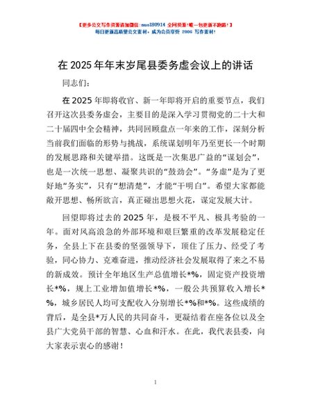 / 在2025年年末岁尾县委务虚会议上的讲话