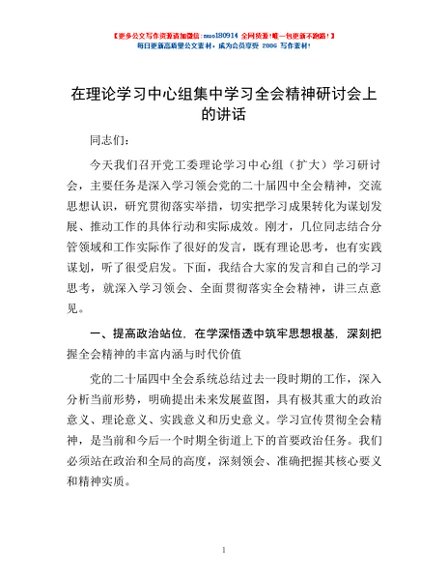 / 在理论学习中心组集中学习全会精神研讨会上的讲话