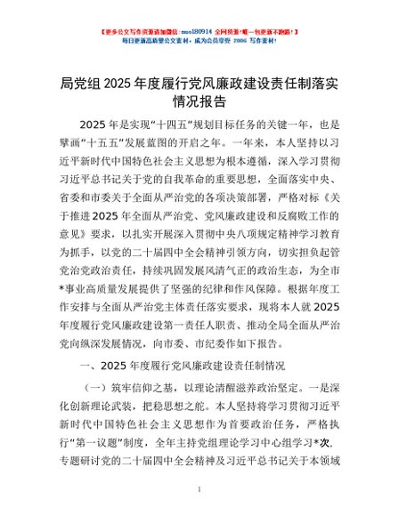 / 局党组2025年度履行党风廉政建设责任制落实情况报告