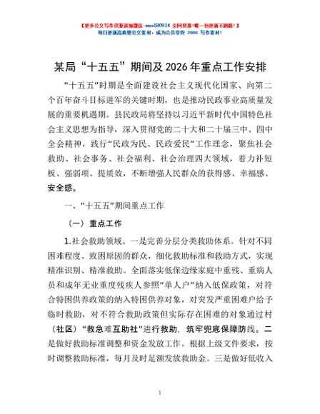 / 某局“十五五”期间及2026年重点工作安排