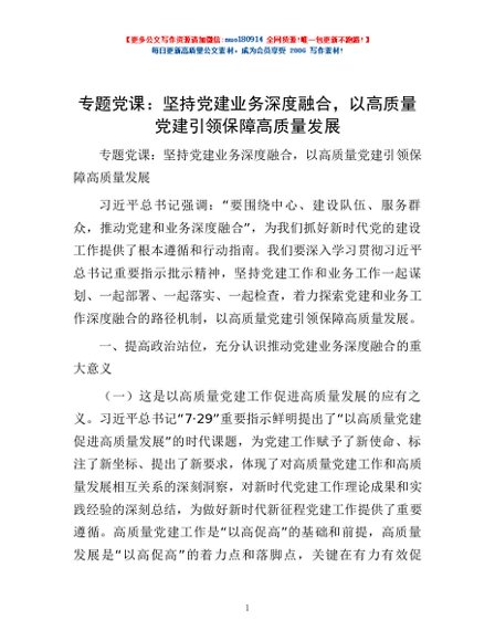 专题党课:坚持党建业务深度融合,以高质量党建引领保障高质量发展