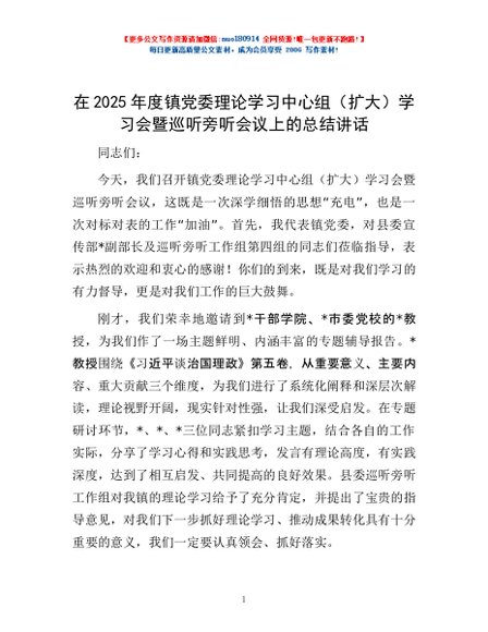 / 在2025年度镇党委理论学习中心组(扩大)学习会暨巡听旁听会议上的总结讲话