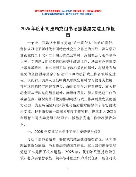 / 2025年度市司法局党组书记抓基层党建工作报告