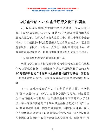 / 学校宣传部2026年宣传思想文化工作要点