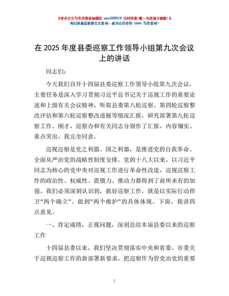 / 在2025年度县委巡察工作领导小组第九次会议上的讲话