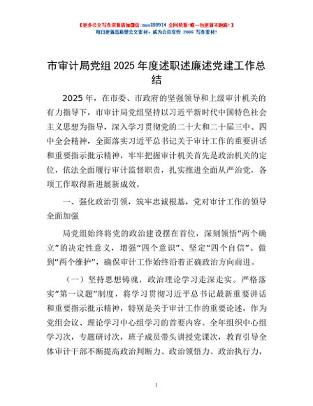 / 市审计局党组2025年度述职述廉述党建工作总结