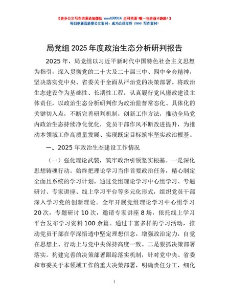 / 局党组2025年度政治生态分析研判报告