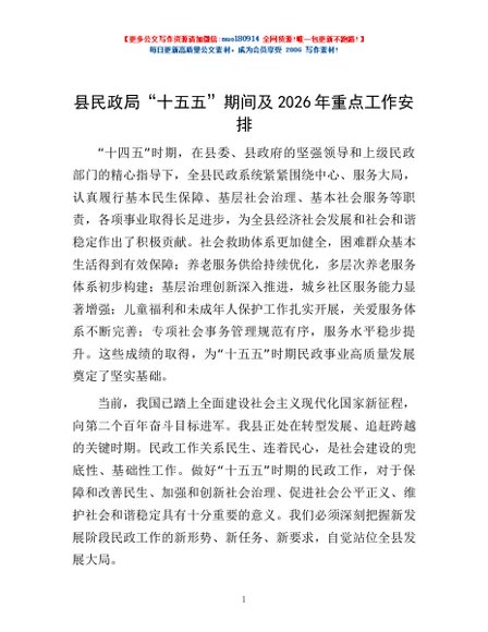 / 县民政局“十五五”期间及2026年重点工作安排