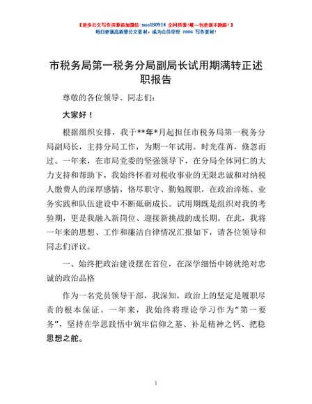 / 市税务局第一税务分局副局长试用期满转正述职报告