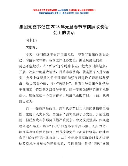 / 集团党委书记在2026年元旦春节节前廉政谈话会上的讲话