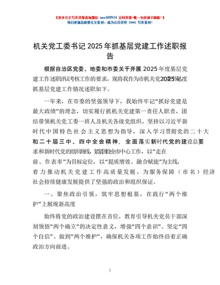 / 机关党工委书记2025年抓基层党建工作述职报告