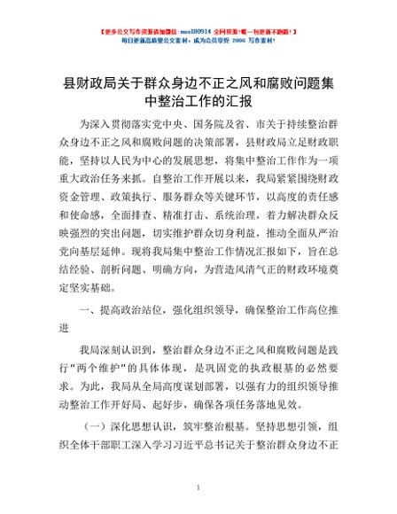 / 县财政局关于群众身边不正之风和腐败问题集中整治工作的汇报