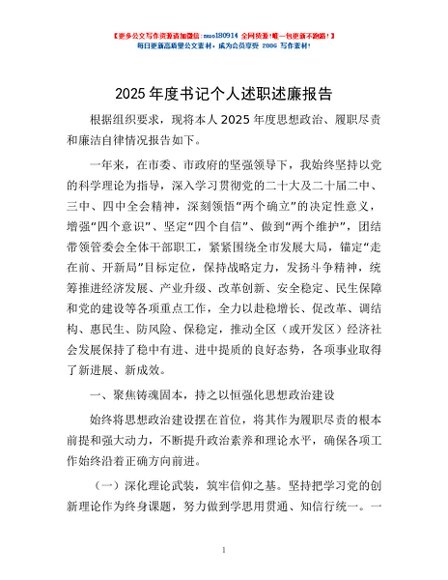 / 2025年度书记个人述职述廉报告