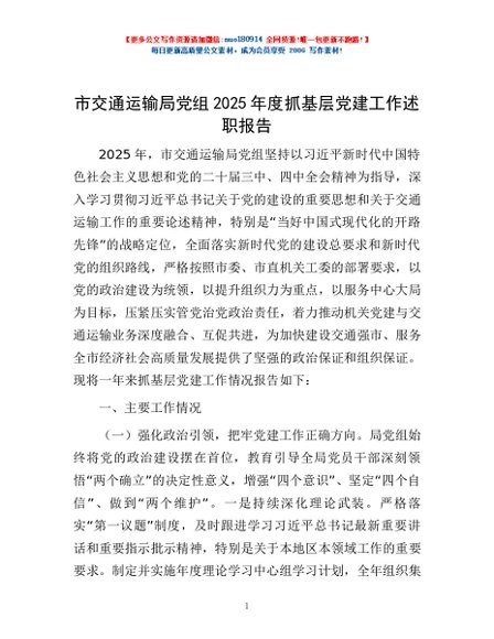 / 市交通运输局党组2025年度抓基层党建工作述职报告