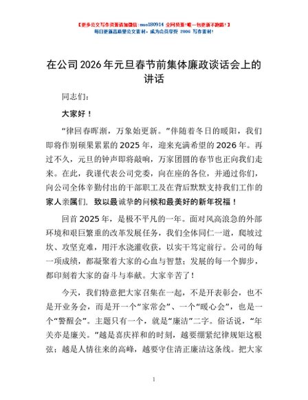 / 在公司2026年元旦春节前集体廉政谈话会上的讲话