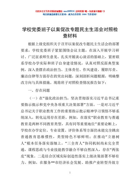 / 学校党委班子以案促改专题民主生活会对照检查材料