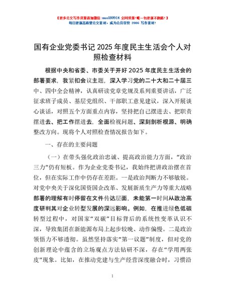 / 国有企业党委书记2025年度民主生活会个人对照检查材料