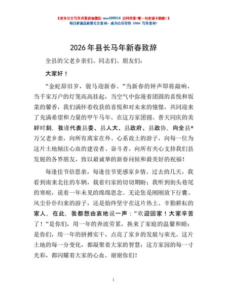 / 2026年县长马年新春致辞