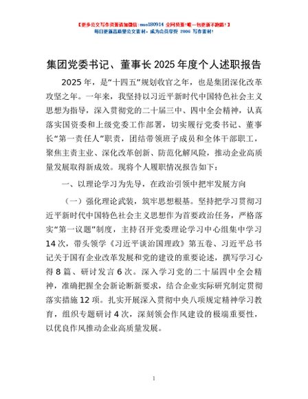 / 集团党委书记、董事长2025年度个人述职报告