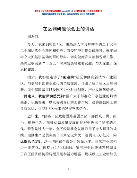 / 在区调研座谈会上的讲话