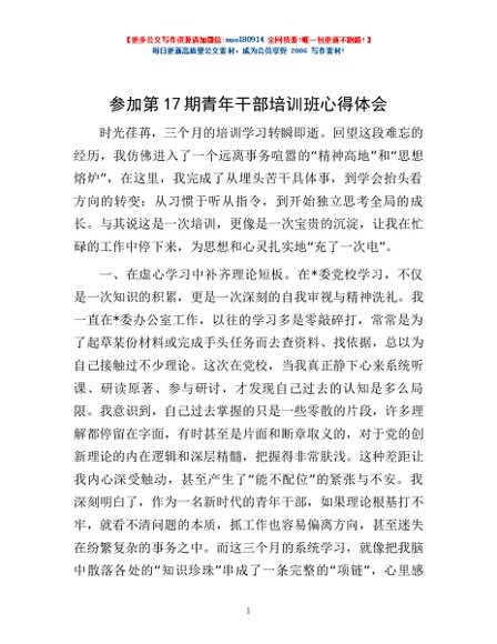 / 参加第17期青年干部培训班心得体会