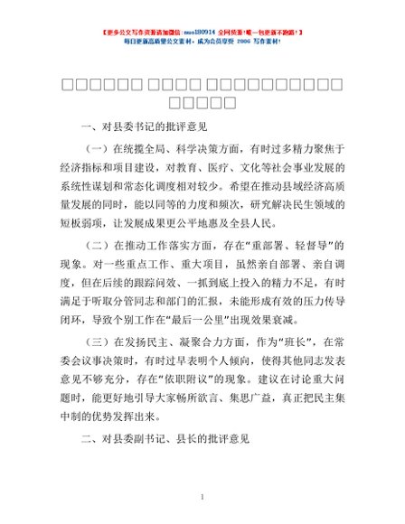 / 县委常委班子2025年度民主生活会相互批评意见汇总