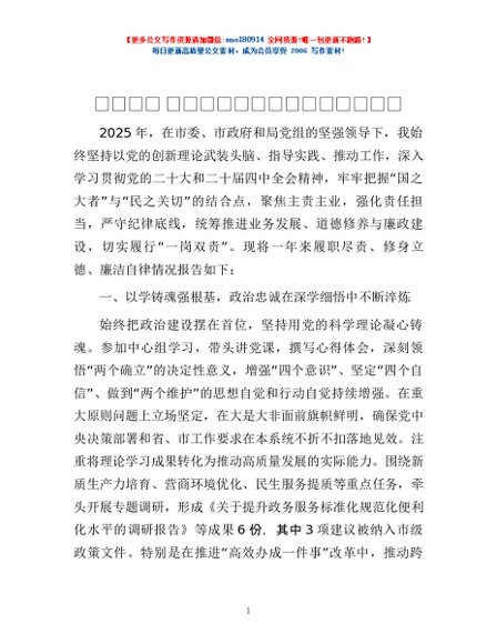 / 2025年度述职述德述廉报告(个人)
