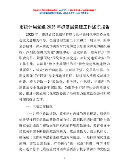 / 市统计局党组2025年抓基层党建工作述职报告