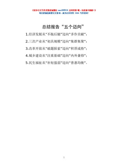 总结报告“五个迈向”
