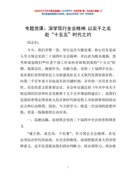 / 专题党课:深学笃行全会精神,以实干之名赴“十五五”时代之约