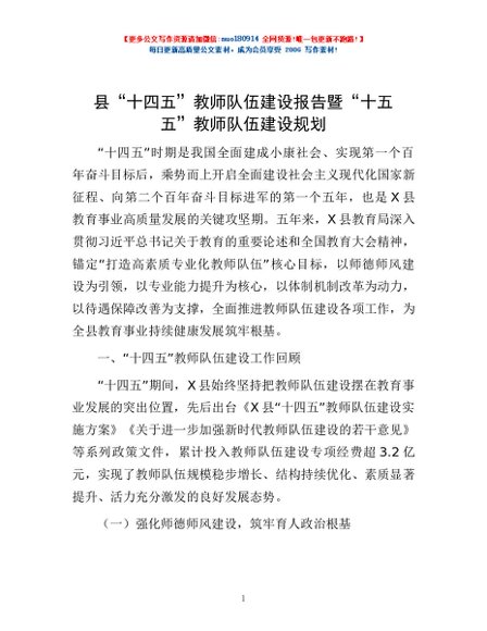 / 县“十四五”教师队伍建设报告暨“十五五”教师队伍建设规划