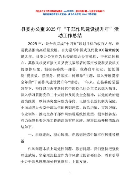 / 县委办公室2025年“干部作风建设提升年”活动工作总结