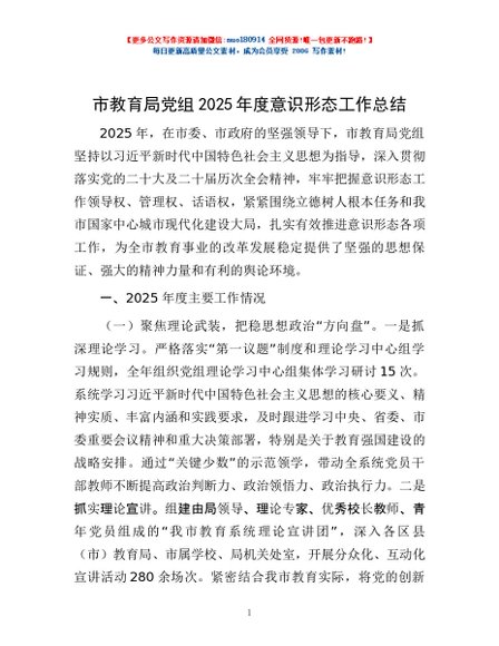 / 市教育局党组2025年度意识形态工作总结
