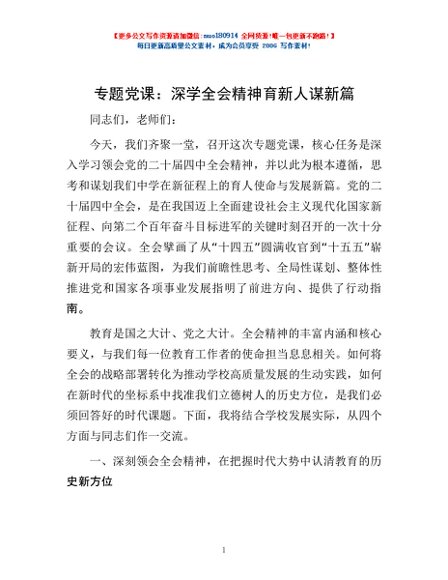 / 专题党课:深学全会精神 育新人谋新篇