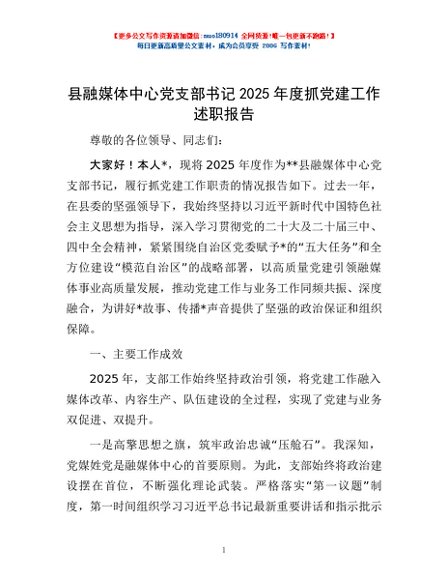 / 县融媒体中心党支部书记2025年度抓党建工作述职报告
