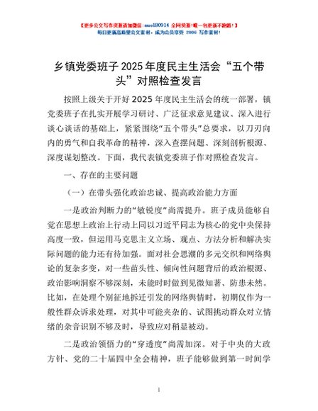 / 乡镇党委班子2025年度民主生活会“五个带头”对照检查发言_001