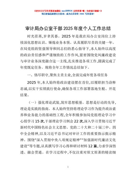 / 审计局办公室干部2025年度个人工作总结