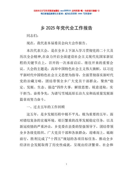 / 乡2025年党代会工作报告