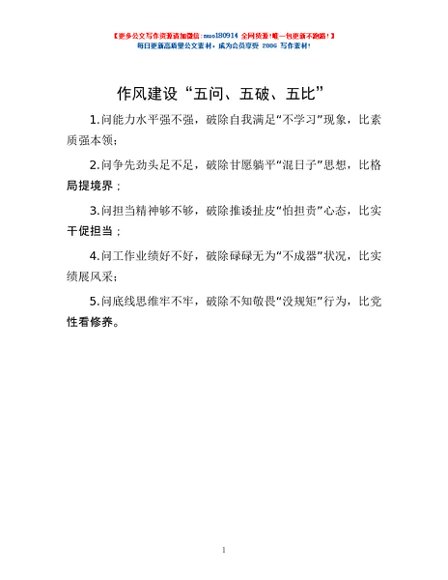 / 作风建设“五问、五破、五比”