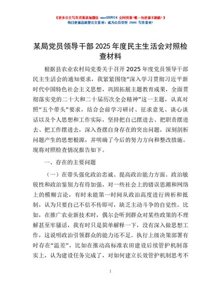 / 某局党员领导干部2025年度民主生活会对照检查材料